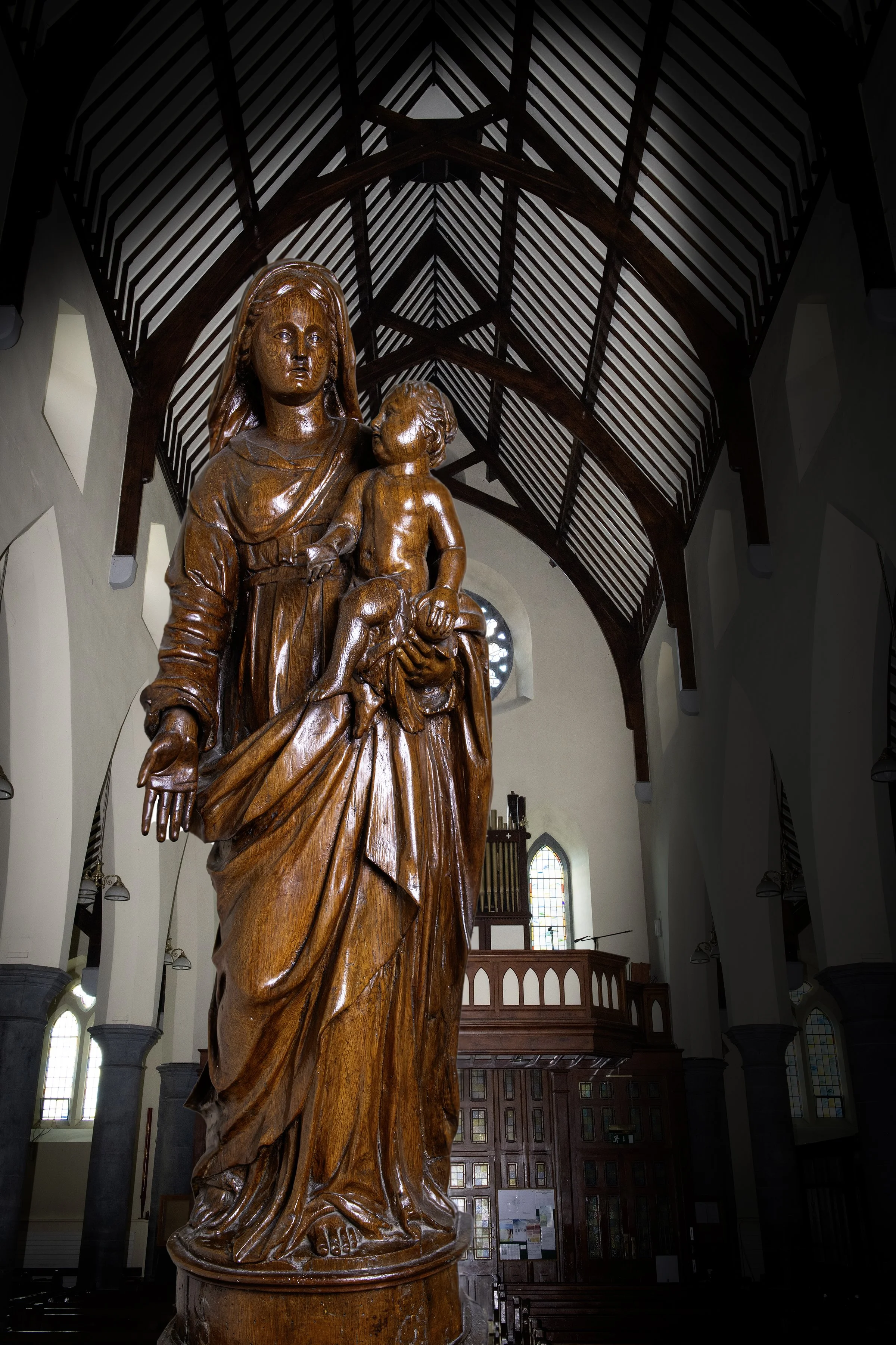 Spain’s devotion to the Virgin had never been interrupted. From the medieval flowering of Marian worship under Alfonso the Wise’s “Cantigas de Santa Maria” (a 13th cent collection of 420 poems to Mary) to Cistercians and Knights Templar, through the Spanish Golden Age of Velázquez and Zurbarán, Marian works and the carving of Madonna and Child statues remained a living art. Andalusia, especially Seville, Málaga and Granada, produced works of exquisite craftsmanship—deeply expressive, richly painted, and imbued with a spirituality that crossed seas and borders. Our Lady of Thomastown belongs to this world. Her journey here was almost certainly a clandestine one, her survival dependent on concealment, her presence a quiet act of defiance. She carries with her not just Spanish artistry, but the memory of a time when to keep the faith was to take a risk—and to risk everything.